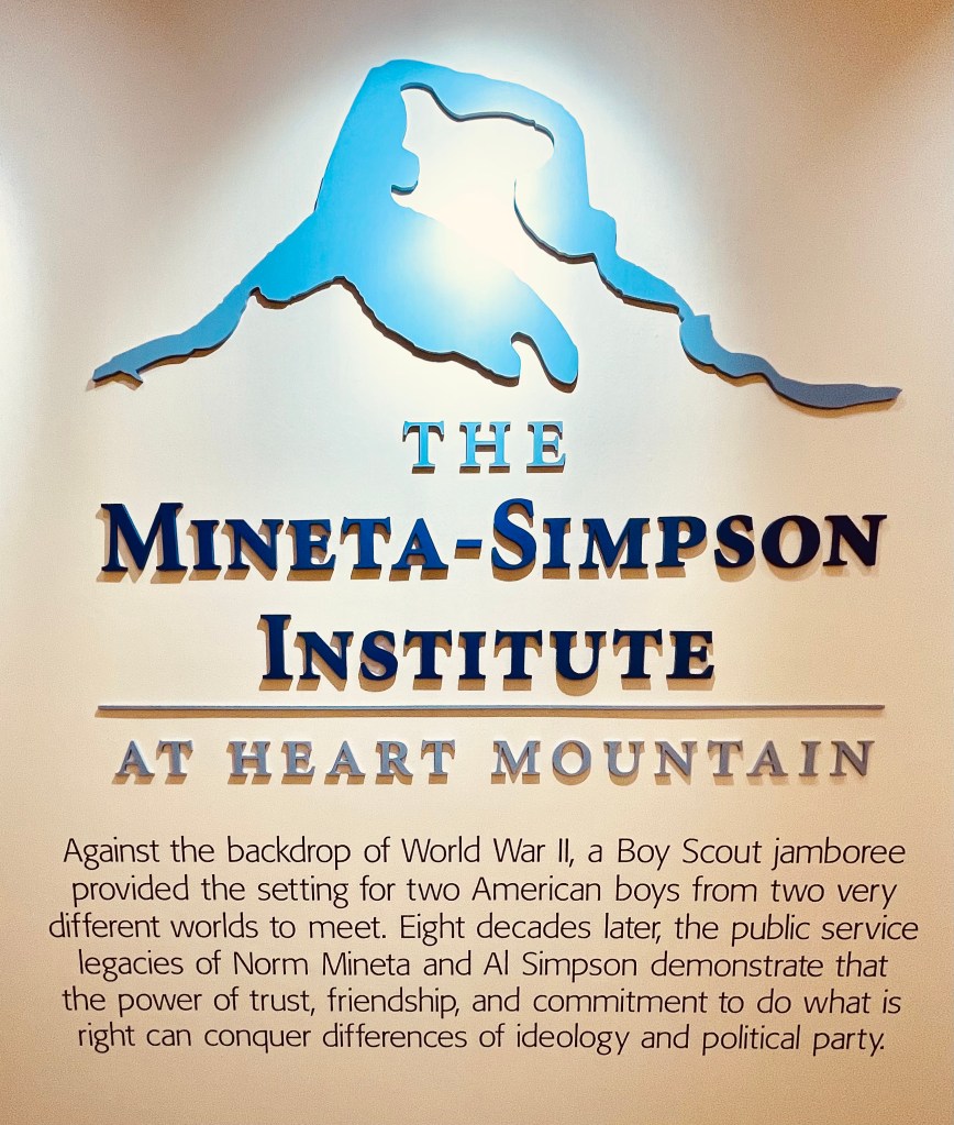 The Mineta-Simpson Institute celebrated its official opening in July, 2024. This permanent exhibit honors the lifelong friendship between Wyoming Senator Alan K. Simpson and the late Secretary Norman Y. Mineta. The two met in childhood as boy scouts at the Heart Mountain camp and have remained lifelong friends. Throughout their lives, Simpson and Mineta worked together to bridge political divides, advocating for civil rights and justice. The Mineta-Simpson Institute now serves as a space for dialogue on civil and human rights, offering workshops, lectures, and art exhibits to foster empathy, courage, and cooperation.