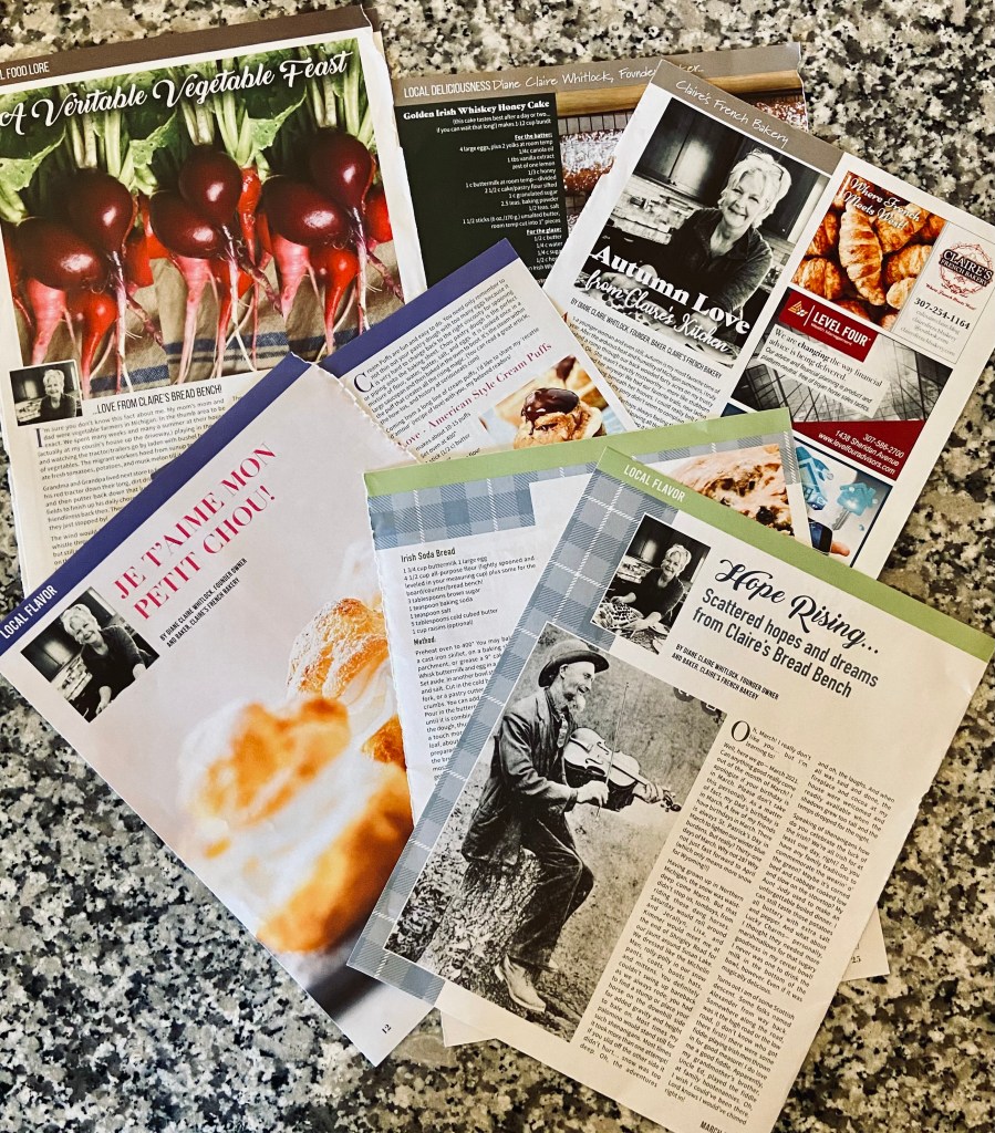 Culinaire Claire: Whipping Up My French Roots in Cowgirl Boots, a cookbook featuring tried and true family recipes and anecdotes stemming from Northern Michigan roots to a firm planting of wild, western, wind-blown Wyoming living.